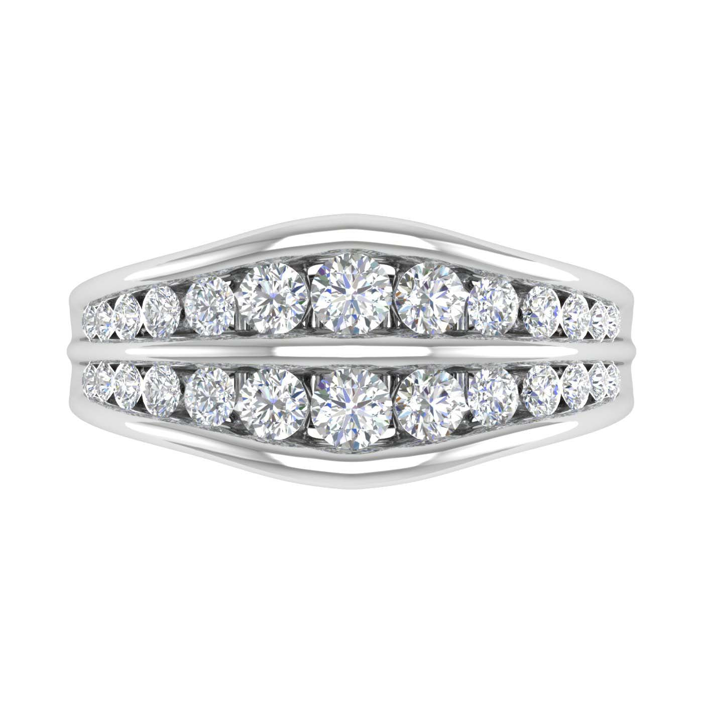 This magnificent wedding band ring is forged into 14K gold with 26 channel set white diamonds of 1 Carat weight. The opulent design of the ring makes it a symbol of grace and style.