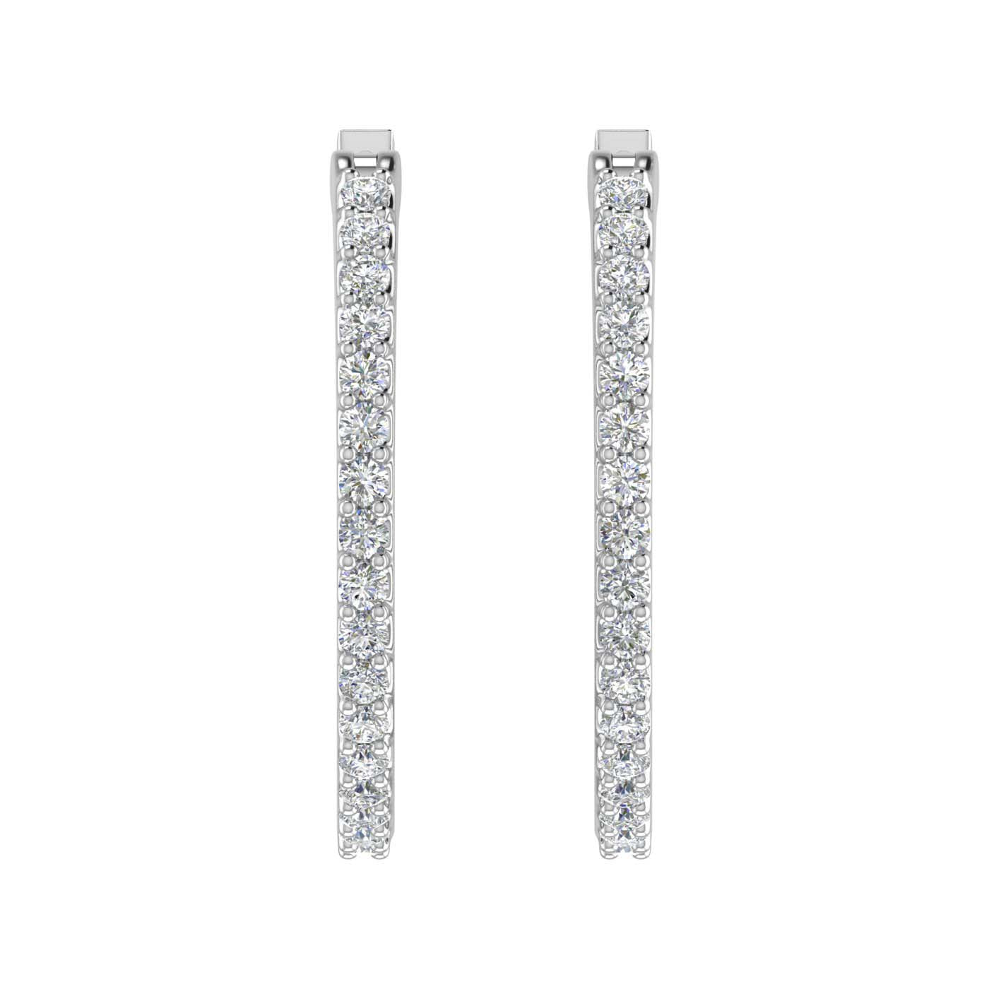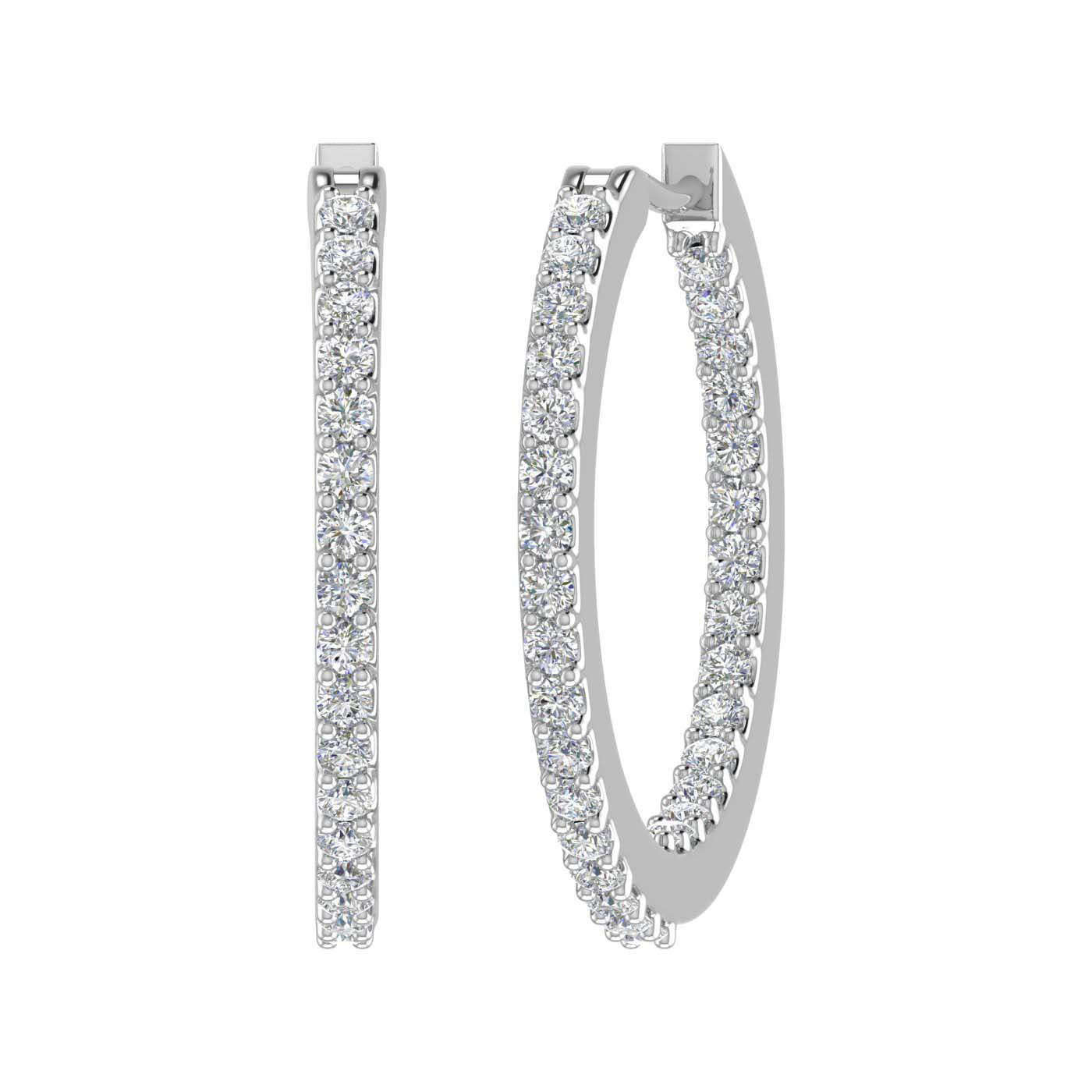 These 0.50 carat prong set diamond inside-out hoop earrings are an ideal option for everyday wear jewelry. Made from 14K gold and embedded with 64 white round diamonds these hoops are light on ear and durable piece of jewelry.