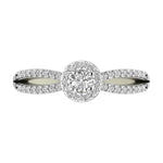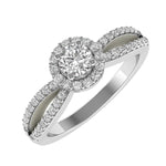 Make a promise of forever with this 14K gold halo engagement ring. The glittering white diamond set elegantly in a halo of prong set diamonds, get engaged and create a lifetime memories with this beautiful ring.