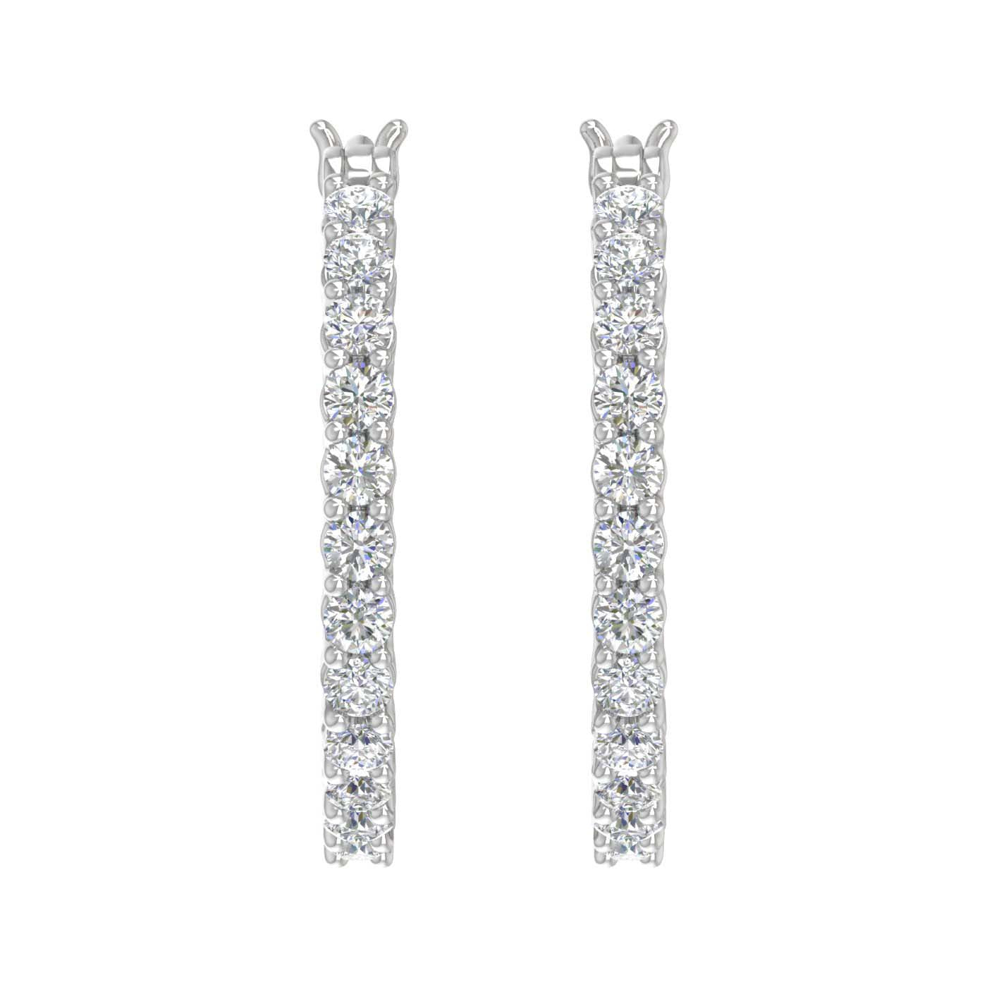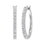 A symbol of Elegance, this hoop earrings features with white diamonds of 1 carat weight. This pair of earring is set in 14k gold and it comes with an IGI certificate for authenticity. The hoops are secured with hinge with notched post. This extremely comfortable piece of jewelry can be wore for occasion in day or night.