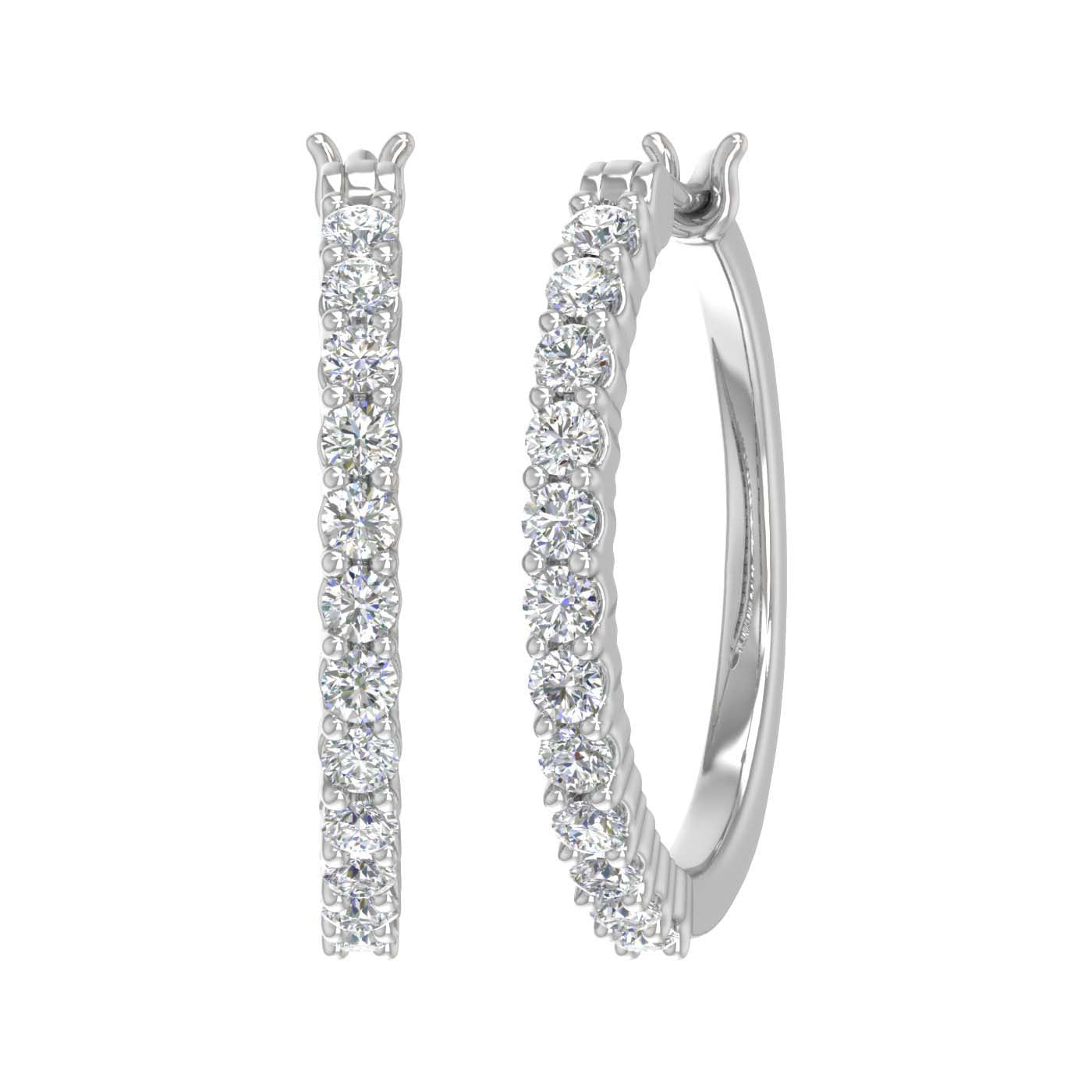 A symbol of Elegance, this hoop earrings features with white diamonds of 1 carat weight. This pair of earring is set in 14k gold and it comes with an IGI certificate for authenticity. The hoops are secured with hinge with notched post. This extremely comfortable piece of jewelry can be wore for occasion in day or night.